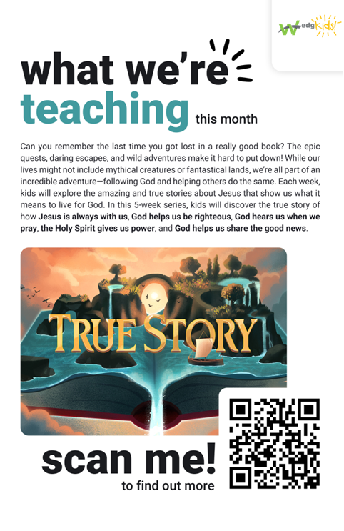 We have a new 4 week topic for our Sunday Morning WedgKids and Families. We would love for you to learn, grow, and discuss along with us.
